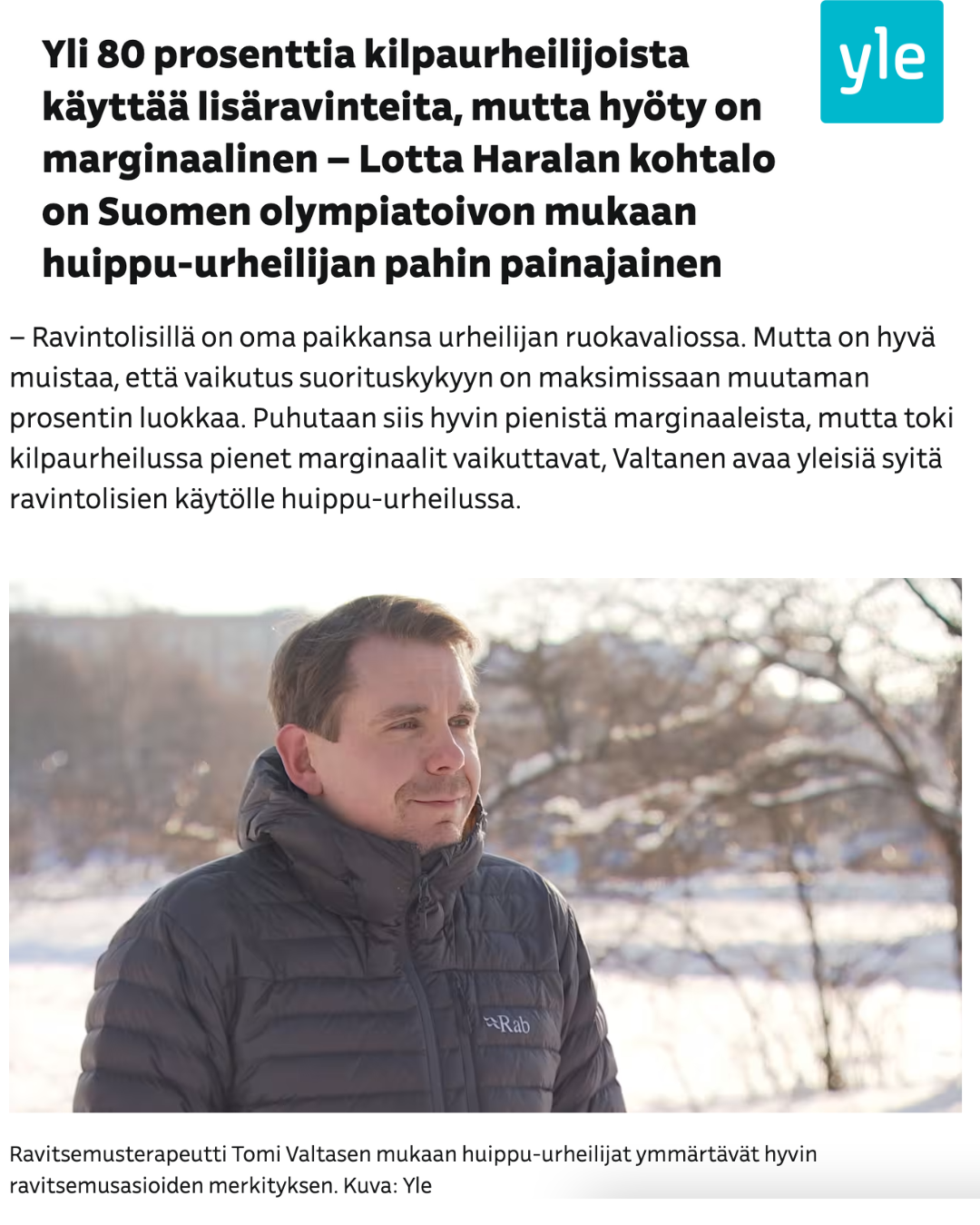 Olen myös ollut asiantuntijana Suomen suurimpien medioiden jutuissa liikkujien ja urheilijoiden ravitsemuksesta — mm. Ylen, Helsingin Sanomien ja Ilta-Sanomien.